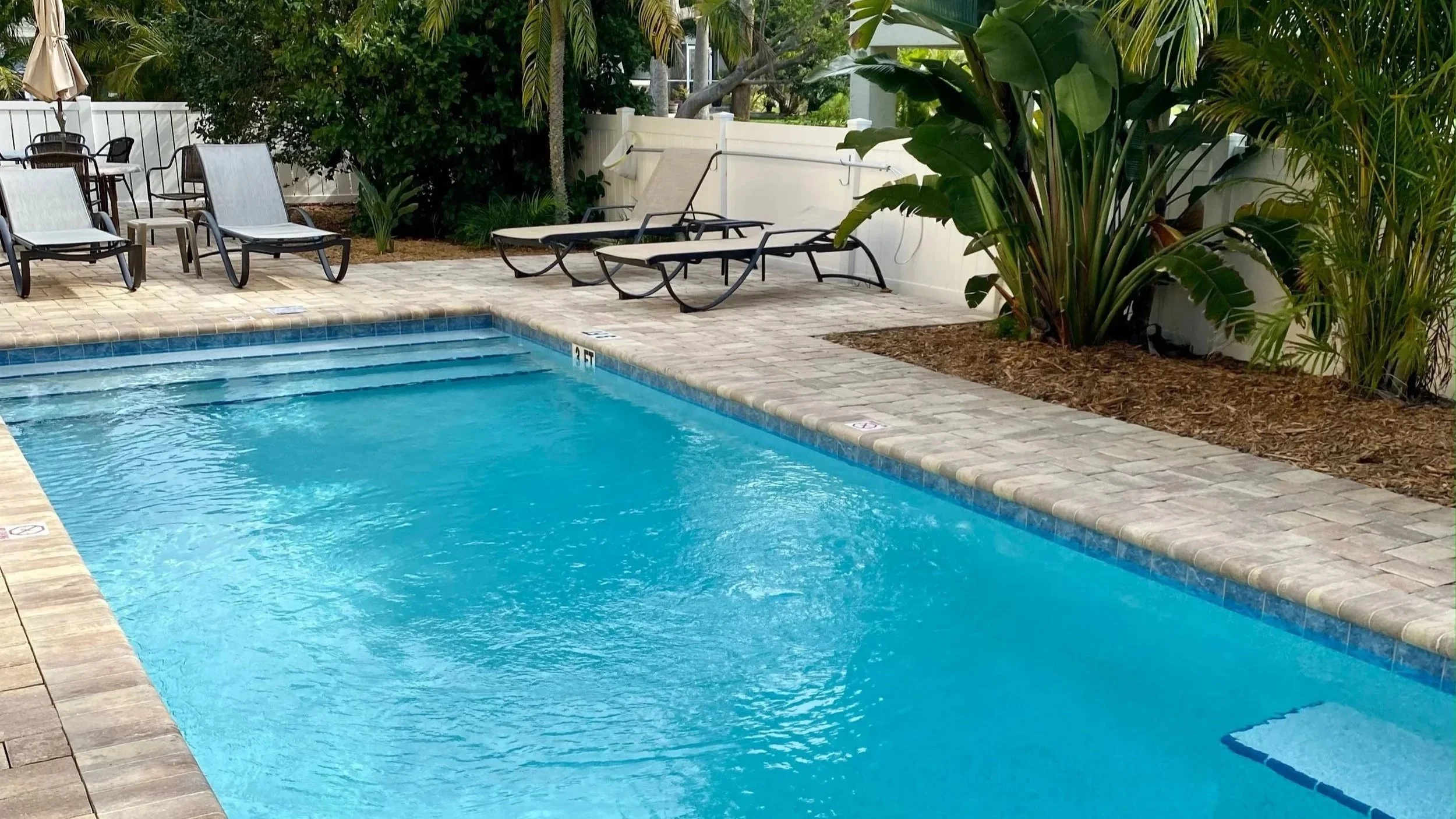 Located on 5th Avenue in Holmes Beach this unit is out of the way on a dead end street. Seaduction offers a heated pool, and every amenity to make your stay here a comfortable one. There are only 4 units in the complex so to pool is "semi private". This beautiful unit sleeps six with a king size bed, a queen size bed and a sofa sleeper in the living room. We are located on the top level of the building. There are approximately 20 stairs and no elevator. Parking is limited to two vehicles.